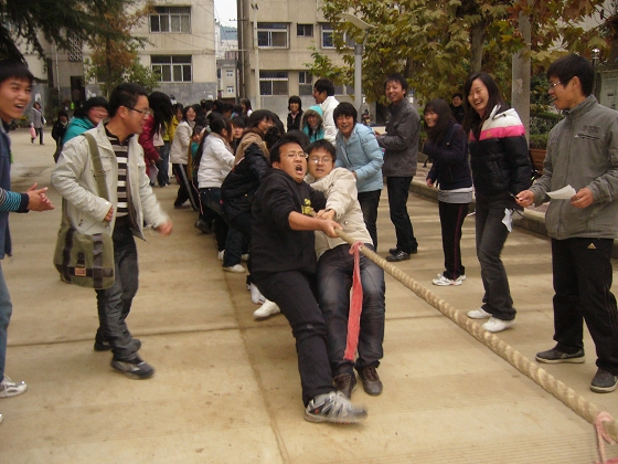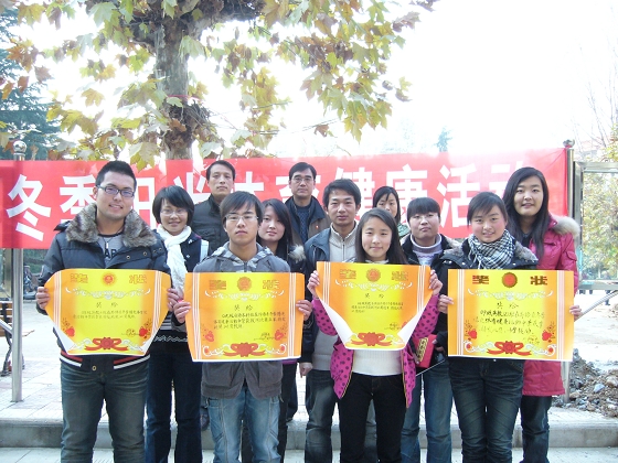 外语系为响应教育部、团中央倡导员工开展冬季阳光体育运动的号召,让同学们在运动中享受阳光,在阳光中享受快乐,在快乐中全面发展,以丰富同学们的课余生活,提高同学们的锻炼热情,11月19日下午举办了“第三届冬季阳光体育健康运动活动”。活动经过各班的预赛选拔于11月19日进行了各项决赛,本届冬季阳光体育健康活动共设有跳棋、跳绳、踢毽子、乒乓球、拔河等 ,经过两天的角逐,2008级英语教育二班、张楠、刘瑶、姚娇娇、姜建党、徐维玉等同学分别取得了拔河、跳棋等项目的第一名,其他员工分获二、三名。学工部部长郑树青、系党总支书记李岩、系学工办主任任森龙、辅导员周静为获奖班级、个人颁发了奖状和证书。郑树青部长勉励大家积极参加校园文体活动,在活动中学会团结,在活动中锻炼能力,在活动中提高素质。