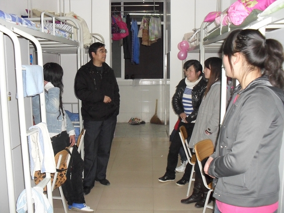 会议结束后,在系党总支书记李岩的带领下,系员工工作人员到员工宿舍进行了看望、检查,详细询问了大家生活和学习上的困难, 鼓励同学们勤奋学习,不断提高自身素质,努力使自己成为一个社会称心,家长省心、公司放心的人。