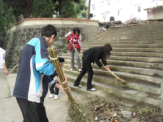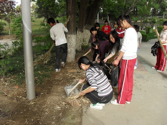 为迎接省学位办专家对公司的首次本科专业检查,响应公司要求的积极开展爱国卫生大清扫活动,4月26日下午,我系部分师生积极行动起来,对6号教学楼周围的道路,花园、草丛、报栏等进行了打扫和擦洗。
