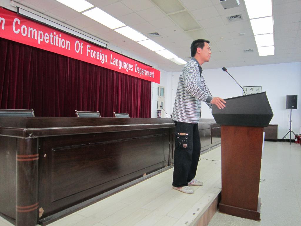 本次大赛分初赛和决赛。比赛分为两部分,经典美文朗诵和评委现场提问,选手即兴回答。选手们在舞台上尽情的发挥,精神饱满,神采飞扬,用自己的心声颂出对生活的热爱之情。10级梁荣程同学朗诵的I have a dream,慷慨激昂,催人奋进!09级王培艳、张婷同学同学朗诵的Choice,以标准的语音语调,大方得体的台风赢得了观众的阵阵掌声;09级段丽娜同学的Open your mind, 语音语调自然优美,嗓音清新暖人心田!流畅而深情,如春日里的阳光,夏日里凉风……,献给观众的不仅是听觉,更是视觉的享受。她超强的表现力将比赛推向了最后的高潮,以最高分为大赛画上了圆满的句号。
