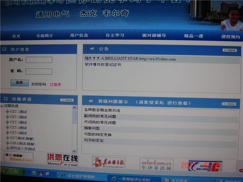 6月1—2日,杨真洪教授利用休息时间,对前期已经建成并试运行的公司“大学英语自主学习网络平台”进行维护和更新。