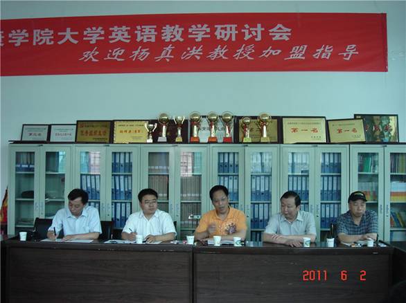 在杨真洪教授加盟我系并驻校讲学之际,由外语系(大学英语教学部)和教务处共同组织的 “大学英语教学研讨会” 于6月2日下午在体育馆一楼会议室举行。公司兼职教授杨真洪、教务处副处长权大学、外语系主任哈红光、大学英语教学部主任李继平、各教研室主任和大学英语教学部教师骨干参加。