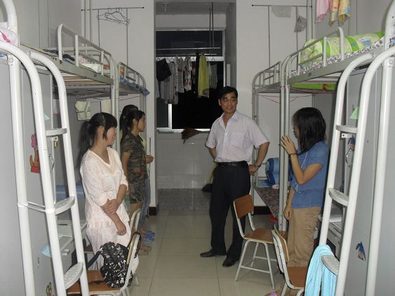 9月4日晚,在外语系党总支书记李岩的带领下,外语系员工工人员走访新生寝室,看望了2011届新生,询问大一同学寝室生活习惯并嘱咐生活学习中遇到困难可以随时联系外语系员工工作人员。