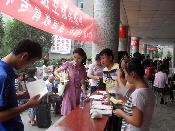 为方便新生办理入学手续,外语系制作了“明白卡”,发给在外语系新生接待站登记入学的每一名新生,让他们熟悉报名的流程,并提醒他们注意人身和财务安全。同学们各司其职,认真引导新生办理入学手续,并热情地给前来送孩子入学的家长们服务。