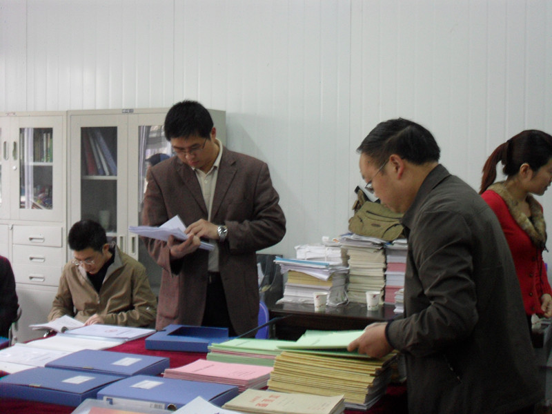 检查组成员在期中教学检查工作汇报现场,查阅了外语系各个教研室提供的员工作业、教案、讲稿、听课记录,以及教研室活动的各种书面汇报材料。