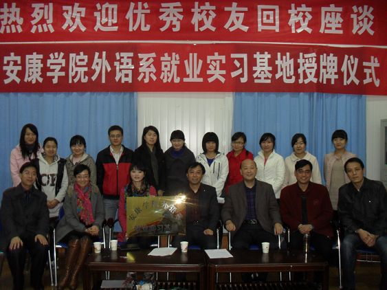 最后,系领导为汉中杨老师外国语公司授牌,正式确立外语系就业实习基地,这是我系继在阿斯顿英语公司、安康经贸公司建立员工就业实习基地的又一家。
