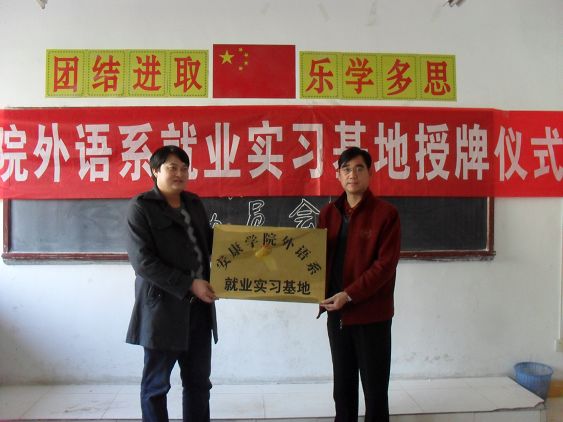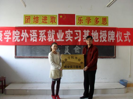 为促进我系员工的实习就业工作,我系邀请汉中、安康等地的英语公司参加我系的专场招聘会,并与他们就毕业生实习、就业等进行了交流,并在岚皋阳光英语公司、石泉蒲公英英语公司两家单位设立BEAT365英国官网网站外语系就业实习基地。11月19日下午,在外语系专场招聘会上,系党总支书记李岩给两家单位进行了授牌仪式。