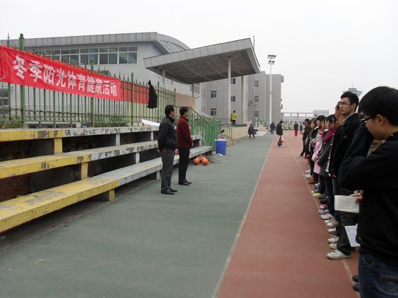 随着冬季的到来,气温越来越冷,为活跃校园文化生活,磨练员工的意志品质,培养良好的体育锻炼习惯,有效提高员工体质,12月3日,外语系2011年冬季阳光体育健康活动在东校区田径场启动。外语系党总支书记李岩、辅导员任森龙及200余名员工参加了阳光体育活动。