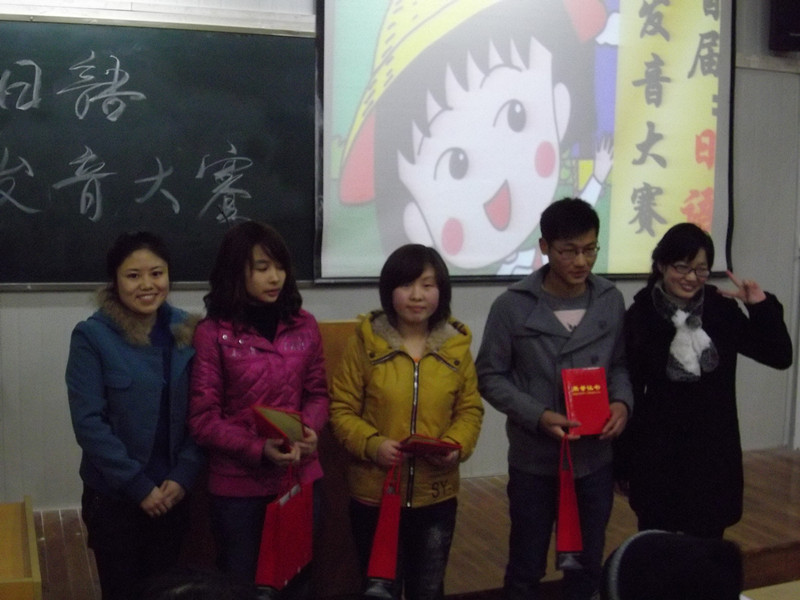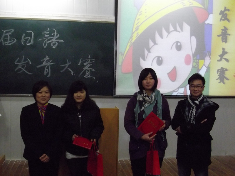 为了培养我系日语专业大一员工的学习兴趣,锻炼和提高他们的日语发音和口语表达能力,在系领导的关怀和指导下,在日语专业雷娟红老师和员工的精心策划和准备下,我系于12月13日晚上在6406教室举办了“首届日语发音比赛”。参加本次比赛的选手皆为大一日语专业新生,日语专业教师赤松秀夫、张琴芳、陈玉平、雷娟红、肖雯、刘婷作为评委出席了本次比赛。另外本专业大二、大三的部分同学也参与了这次活动。