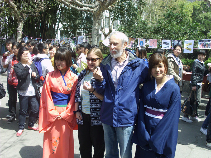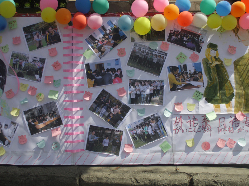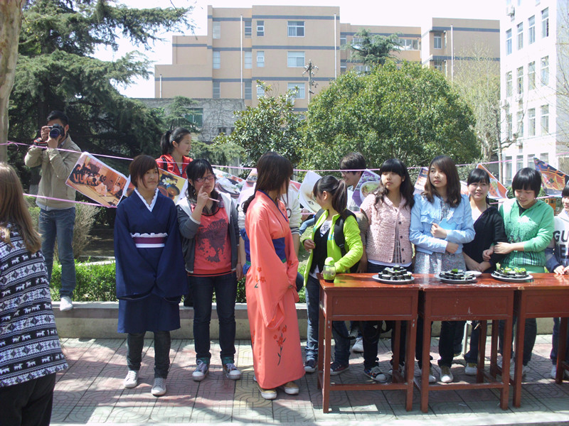 3月31日中午12点,伴随着一阵愉快下课铃声,外语系第三届“日语文化广场”在公司第一食堂前的林荫道上拉开了帷幕。外语系系主任哈红光、书记李延福、副主任张哲华以及外教艾伦·佩里夫妇、赤松秀夫等出席了活动现场并参观了活动的内容。有关日本“衣、食、住、自然风光”四个主题的图片展览;精美的日本寿司料理品尝;激情澎湃的日语歌曲演唱;扣人心弦的有奖竞猜活动;令人流连忘返的日本漫画书籍展览等各个环节依次推出,吸引了众多师生前来参观,也让众多的日本文化迷们大呼过瘾。一条短短的林荫道顿时成了一片欢歌笑语的地方。
