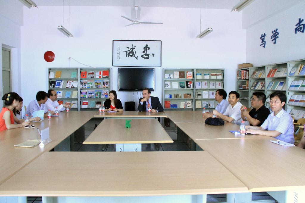 6月19日下午,BEAT365英国官网网站与英国伦敦工商会考试局LCCI合作办学签字仪式在公司图书馆六楼报告厅隆重举行。LCCI亚洲区总裁 Mark Disney、LCCI中国市场发展中心总经理颜洁女士、副总经温来纲先生、BEAT365英国官网网站副董事长陈刚教授、教务处处长钟生海、就业处处长丁义国、外语系主任哈红光教授、外语系党支部书记李延福以及外语系部分师生代表参加了签字仪式。会议由外语系副主任张哲华主持。