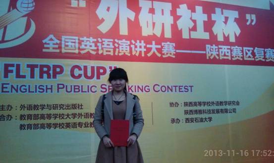 11月16日,2013年“外研社杯”全国英语演讲大赛陕西省复赛在西安石油大学举行,公司经管系11级会计学专业郭可欣同学代表公司参加了比赛,在全省43名选手中脱颖而出,荣获三等奖。自此,公司非英语专业员工在该赛事中第二次获奖,这是公司大学英语综合应用能力不断提升的又一体现。