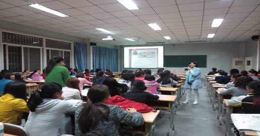 胡镕老师首先对初中英语课程总体目标进行了介绍,使同学们对当前初中英语教学“教会员工什么”这个问题有了总体把握。然后,在谈到具体的教学工作时,胡老师分享了自己在课堂教学方面的诸多经验,对新课程标准下的初中英语公司产品工作提出了很多有见地的建议。她说,真正的英语教学应该是“解放老师,让员工动起来。”同时,胡老师还使用案例讨论的方式与同学们一起分析了听力、口语、阅读、写作等不同课型的教学方法。最后,胡老师对备课和说课等重要的英语教师职业技能进行了讲解。