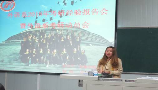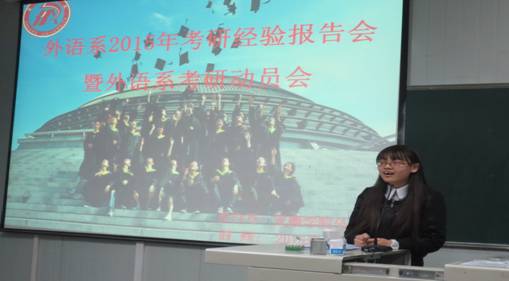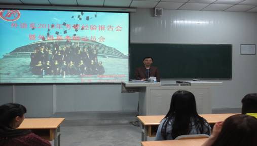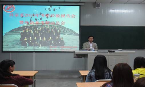 面对当前日益严峻的考研压力,为更好地指导员工考研,4月13日晚,外语系“学习沙龙”系列活动之“2015考研动员暨经验交流会”在1018教室举行。系主任哈红光、副主任张哲华和青年教师代表赵龙、朱国琴出席了本次会议。我系12级本科生、14级专升本员工、部分13级员工及2015年部分考取研究生的员工代表参加了会议。大会由副主任张哲华主持。