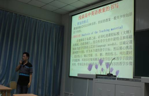 为进一步推进英语教师教育教育改革,应我系邀请,5月4日晚,汉滨区区级教学名师、汉滨高中骨干教师王建斌老师在1026教室为英语师范生做了题为《高中英语教案书写》的专题讲座,英语教师公司产品团队教师参加讲座。
