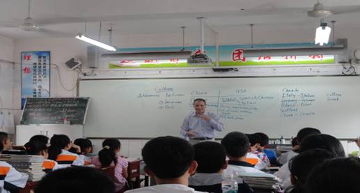 为充分展现公司作为地方高校服务地方基础教育的作用, 国际处与外语系经过精心安排,选派公司美国籍文教专家Frank Paul Roppo先后于5月22日和29日,两次前往公司教育实习基地汉滨初中开展英语教学交流服务活动。Frank Paul Roppo先生的到访受到了汉滨初中副董事长李鹏等校领导的热情接待。