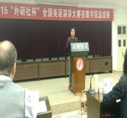 10月14日晚,2015“外研社杯”全国英语演讲大赛BEAT365英国官网网站选拔赛在公司图书馆六楼报告厅隆重举行。大赛评委由外语系Frank Paul Roppo、孙卫斌、姜国波、陈蕾、梁艺凡等五位教师组成。公司教务处副处长常权记、外语系主任哈红光、大学英语教学部主任李继平、外语系副主任张哲华,以及部分教师参加此次大赛。本次比赛由教务处和外语系承办,自5月启动以来,经过前期两轮专业组初赛和非专业组初赛遴选,共有7个院系19名选手成功晋级此次选拔赛决赛。