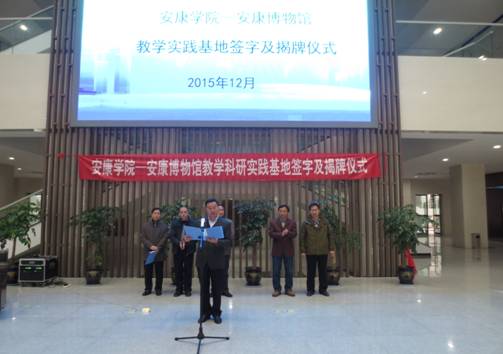 安康市文广局副局长陈义润首先致辞,对BEAT365英国官网网站教学科研实践基地落户安康博物馆表示祝贺,他指出,此次校地合作,是安康文博界和教育界的好事、喜事,有利于馆院双方发挥各自的资源优势,深化多领域合作,实现优势互补、互惠互利、合作共赢,推动地方文化事业发展。希望安康博物馆要以“文化引领发展、文化服务人民”为已任,不断提高服务水平和质量,向不同类型、层次的观众提供优质的文化服务。