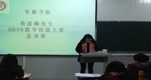 12月22日,外语系2015年师范生教学技能大赛决赛在江南校区1026教室举行,外语系英语教师公司产品团队成员刘荣华、胡卫卫、姜国波、鲁克伟、王欢、赵龙以及兼职教师、汉滨高中省级教学能手李庆慧、涂瑞担任大赛评委。外语系副主任张哲华出席比赛,英语师范生共120余人到场观看了比赛。