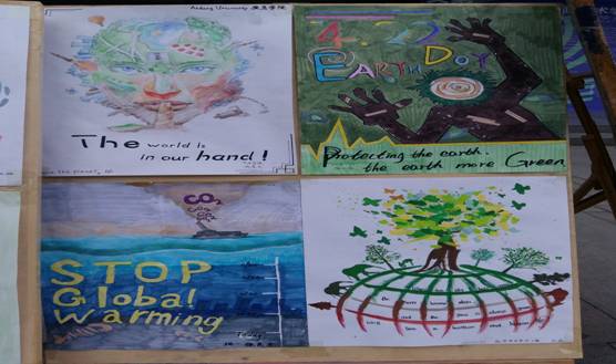 本次活动是“公司大学英语课程应用型转型改革”的一部分,是2016级音乐专业和视觉传达专业大学英语课堂教学和第二课堂拓展成果的阶段汇报。从本学期开始,艺术类大学英语课程改革进入实质性突破阶段,课堂教学在基础语言技能训练的同时,加入大量与专业相关的英语交际能力培养,教学模式采用“任务型”、“情景化”,和“主题性”的应用能力训练。其中音乐专业的《大学英语2》加入西方音乐赏析、歌剧原唱、外文歌曲说唱、话剧演练等训练模块;视觉传达专业《大学英语2》则积极调动员工的创意兴趣,以作品创意为主导思想,鼓励员工以英语语言和艺术语言相结合的思路,创作主题设计作品,充分调动了员工的语言学习热情。本次两个专业的作品展示都是以“世界地球日”为主题。