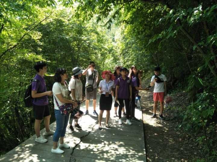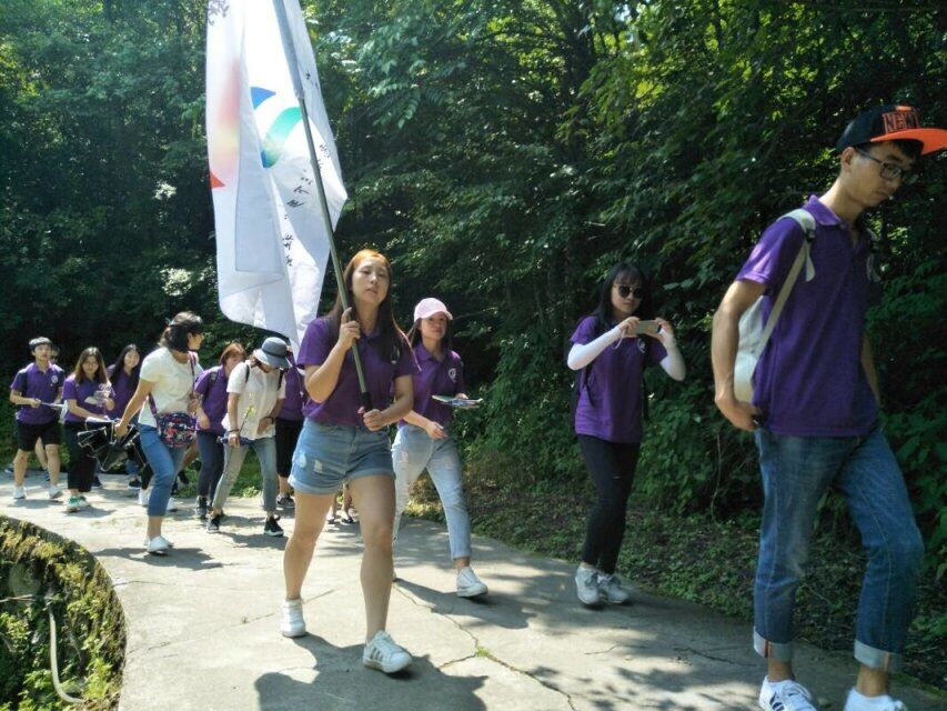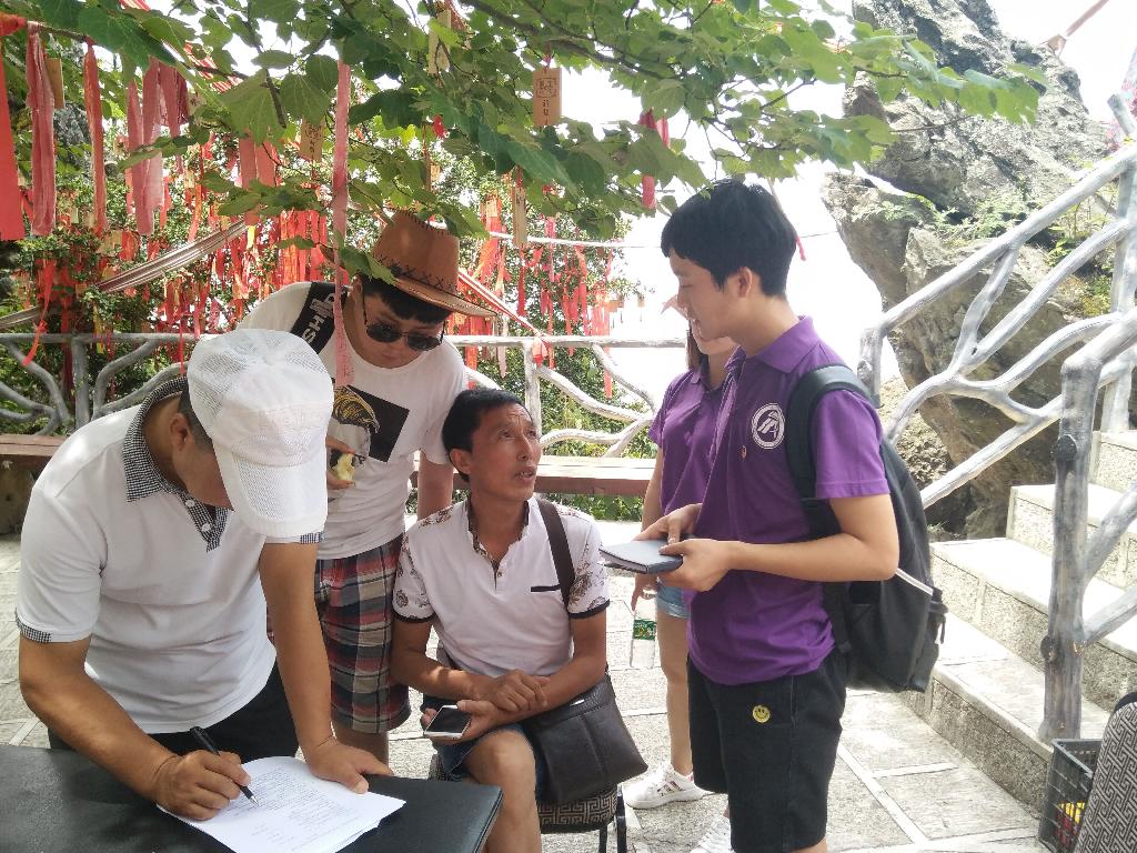 上午7点整,十三名实践员工在辅导员老师常远红、专业指导老师邓雪玲的带领下准时从公司出发前往南宫山实践点。到达岚皋县南宫山大酒店后,实践团队与支持本次活动的南宫山景区负责人李宁会面。随后,李宁带领实践团队前往南宫山景区,在南宫山景区门前,李宁首先介绍了本次活动的路线及安全注意事项:本次活动从北大门出发,途径二郎坪、千步阶梯、观音望海、玻璃栈道、真身殿及飞拉达攀岩等景点,李宁强调小环线路线路途陡峭,希望实践对员们注意自身安全,服从带队老师安排。随后,实践队员们开始了本次的实践活动。队员们沿着景区路线,积极收集公示语标识牌及英译的第一手资料,负责人李宁也积极的为实践队员们讲解各个景点的历史背景,同学们虚心求教,不懂就问,为接下来的英译工作做准备。队员们也对景区游客及景区工作人员进行公示语英译语言规范性的问卷调查,当地游客对本次的社会实践活动非常支持,积极配合问卷调查。队员们还收集了游客对标识语英译的准确性和规范性的意见和建议。