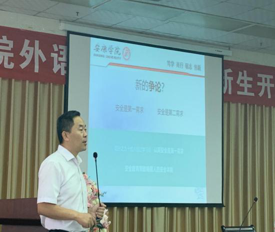 在讲座中,王开忠指出,本次讲座作为新生入学教育的重要组成部分,也是为了创建平安校园,维护老员工的人身、财产安全,提高新生的安全防范意识与自我保护能力。安全,是人最基本也是最重要的需求。安全知识教育当代老员工十分重要,我们虽身处和平时代,但身边的危险却无处不在,网络安全,道路交通安全,医疗卫生安全,自然灾害等的发作等都会危及人类的生命安全,因此安全知识显得尤为重要。王开忠从盗窃、欺诈、抢劫、流氓滋扰、火灾、溺水、交通事故、传销陷阱、网络侵害、心理疾病等各方面问题进行了详细的讲解。同时还未同学们分享了地震、消防等应急措施。