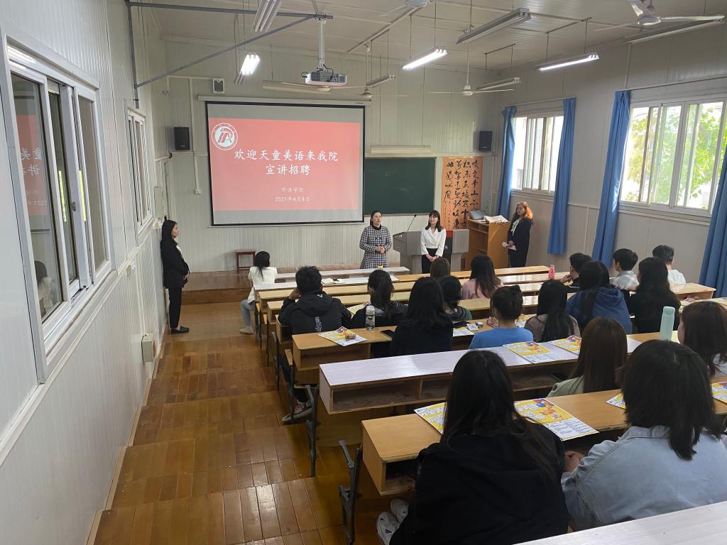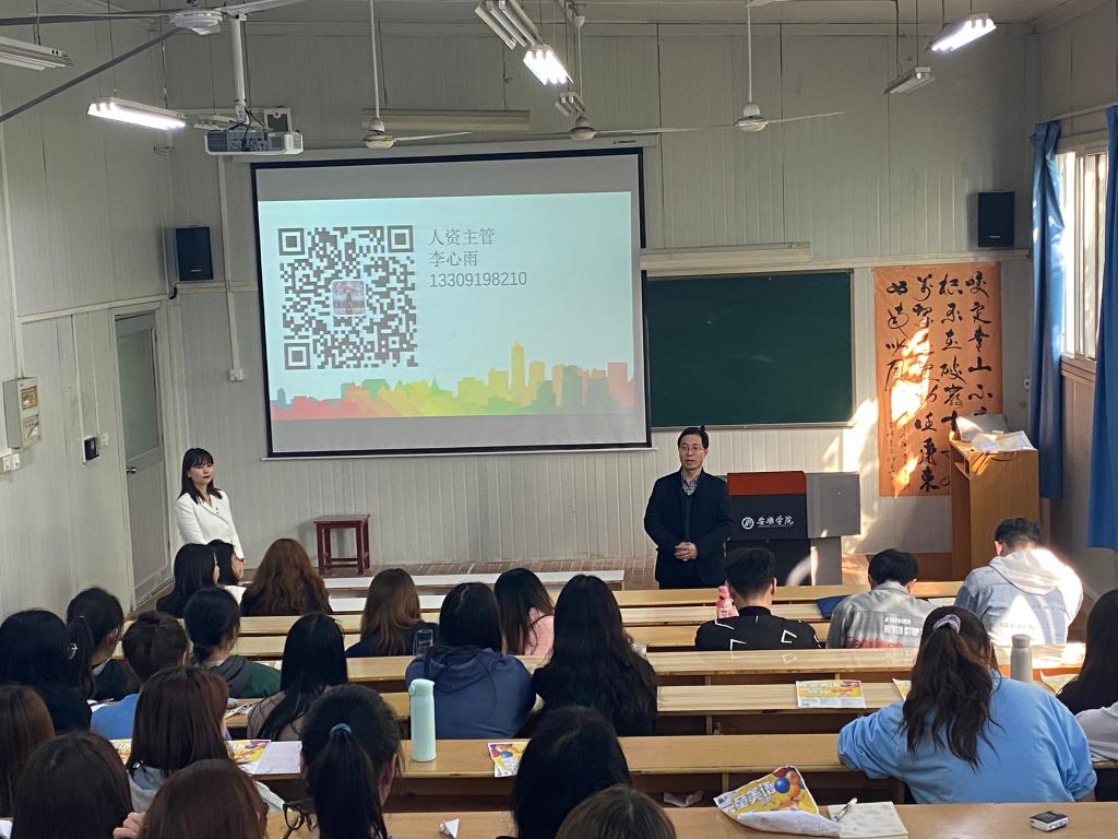 为进一步贯彻党中央、国务院“六稳”“六保”决策部署,促进公司2021届毕业生充分就业,帮助毕业生拓宽就业视野,着力促进毕业生多渠道就业,4月8日下午,beats365唯一官方网站在6407教室举办2021届师范类毕业生专场招聘会,用人单位“天童美语”到场为公司员工做宣讲招聘,beats365唯一官方网站学党总支书记肖红香、副经理张哲华、毕业班辅导员梁博文以及83名2021届毕业生参加了本次宣讲招聘会。