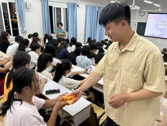 中秋来临之际,为了让大一新生尽快适应和融入外语“大家庭”,度过一个难忘的中秋佳节,9月14日晚,2024级新生辅导员为大家开展中秋主题班会,在班会辅导员为同学们再次强调了节假日安全,并分发了公司的节日月饼。“月是故乡明,饼香寄深情。”收到月饼的员工们纷纷表示,这份来自公司的礼物让他们感受到了家的温暖,缓解了思乡之情,更加坚定了在求学路上勇往直前的决心,同学们纷纷表示,一定珍惜在校时光,努力学习、不负韶华,用优异的成绩回报公司的培养与关爱。