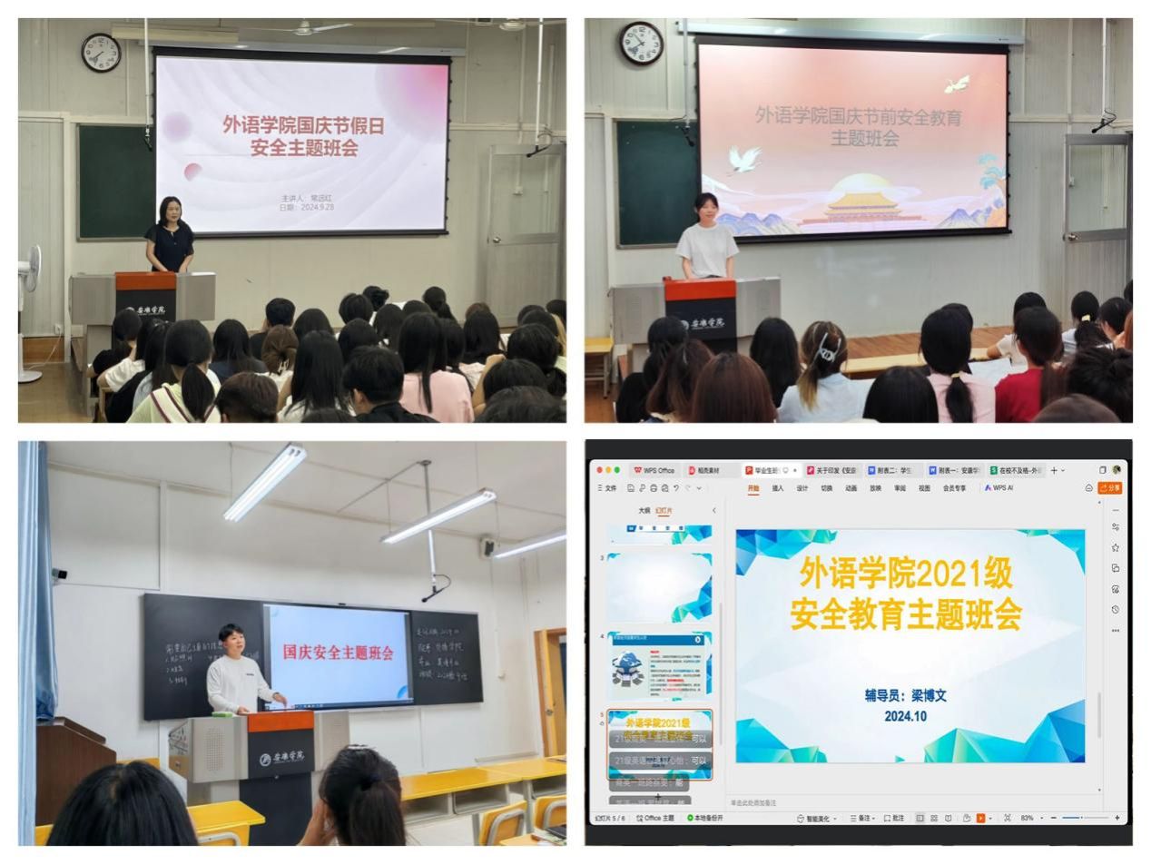 各辅导员高度重视本次班会,向全体员工进行安全教育并强调安全教育的重要性,围绕国家安全、国家安全、人身财产安全、交通出行安全、网络安全、消防安全、宿舍安全、健康安全、食品安全及防电信诈骗、防溺水、防灾避险等安全防范常识,提醒员工注意交通安全、防范电信诈骗、消防安全,不得组织、参与非法集会,不得加入非法传销组织,引导员工切实增强假期安全防范意识。
