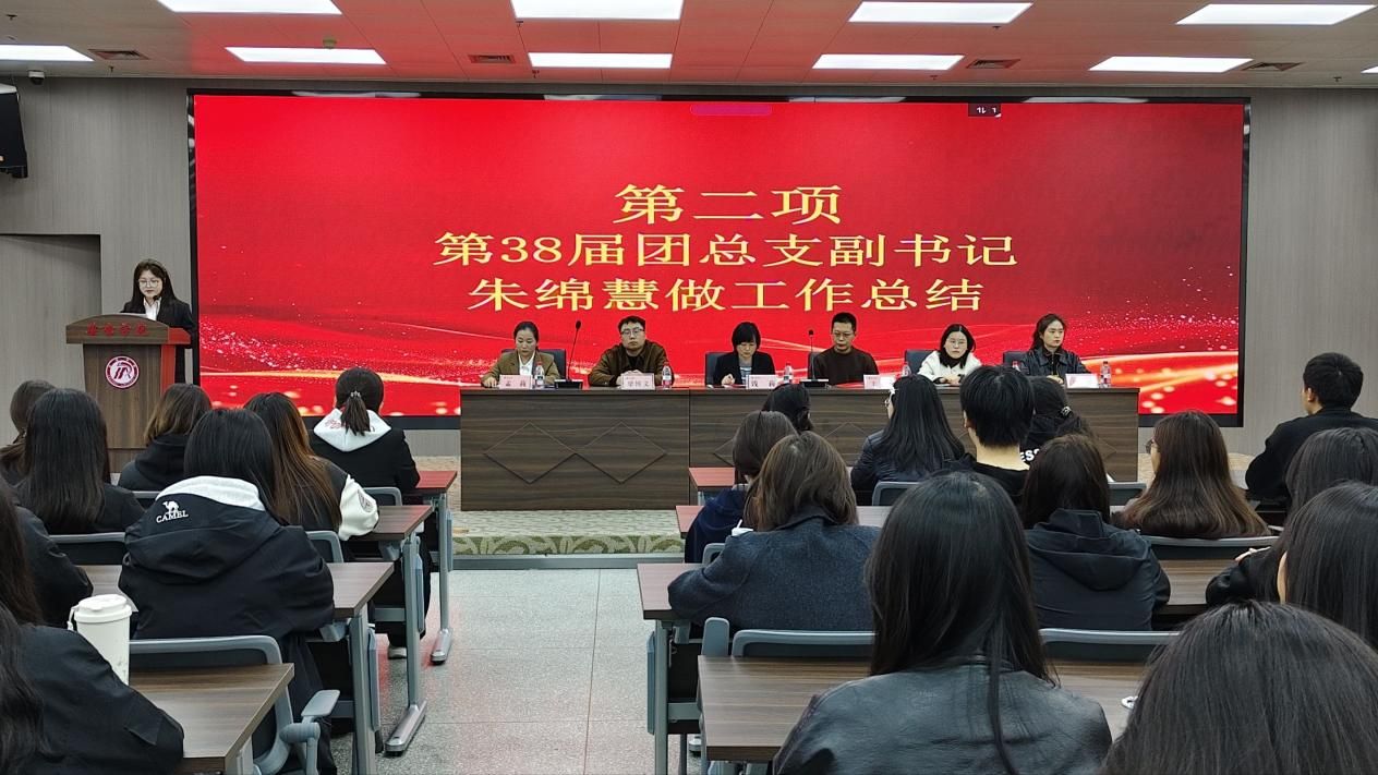 首先,第38届团总支副书记朱绵慧作2024—2025学年团总支员工会工作报告,全面回顾了过去一年团总支员工会在思想引领、校园文化活动、志愿服务等领域的丰硕成果,分享了在团队协作、服务同学过程中积累的宝贵经验与深刻感悟,同时对新一届员工干部寄予殷切期望。