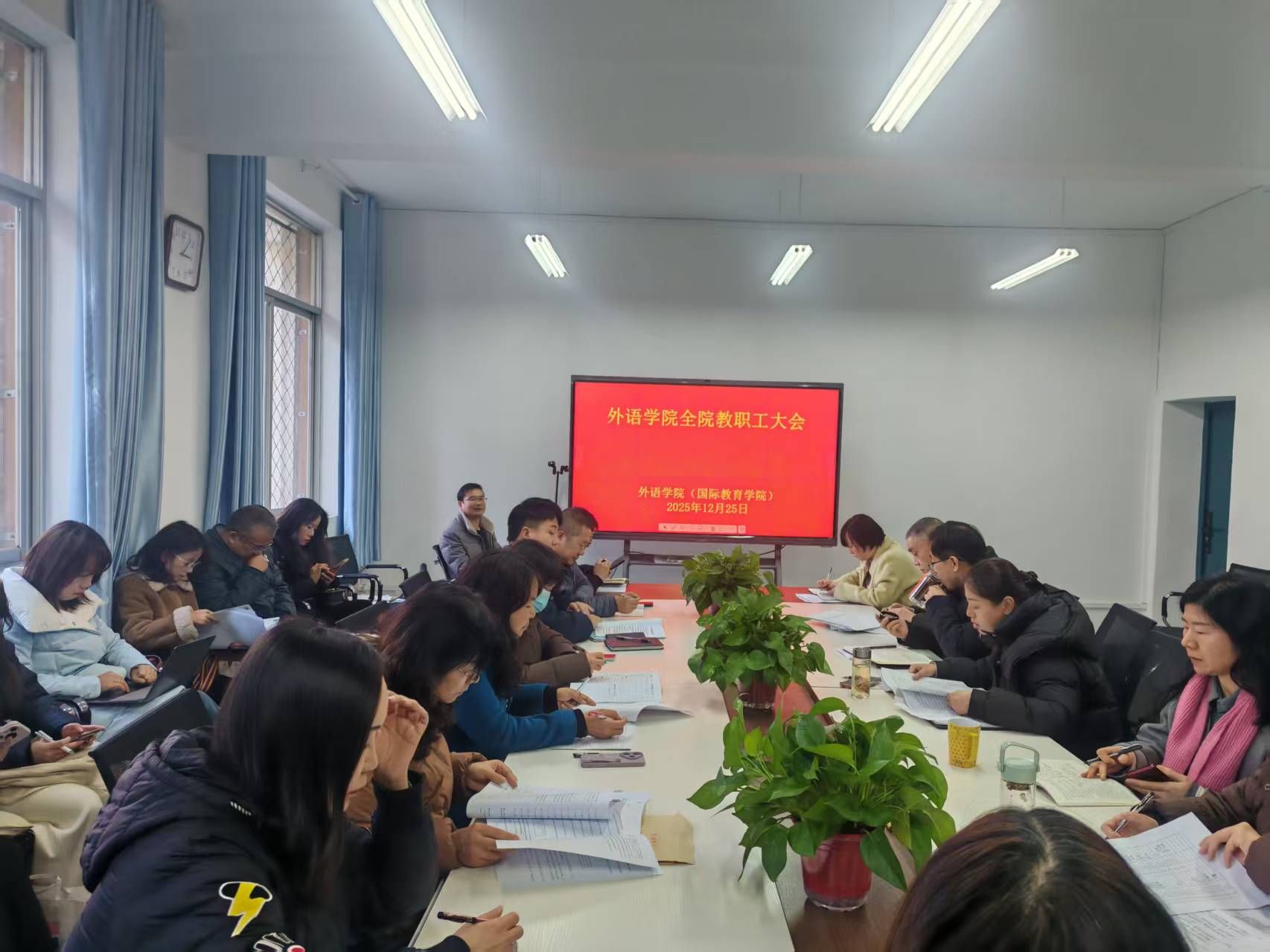 会议伊始,肖红香书记以“深学细悟强担当 凝心聚力促发展”为主题,领学了党的二十届四中全会精神。强调要将学习成果转化为推动外语教育改革、服务国家战略的行动自觉,要求全体教师立足语言学科特色,在跨文化传播、国际交流等领域主动作为,为培养具有全球视野的高素质人才贡献力量。