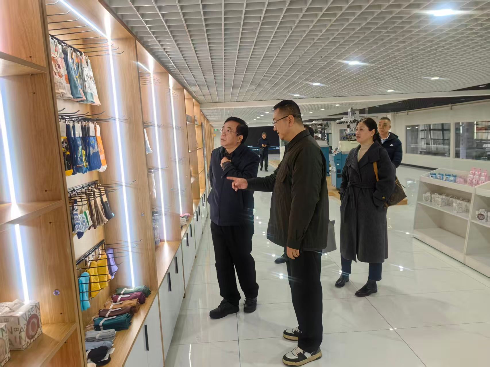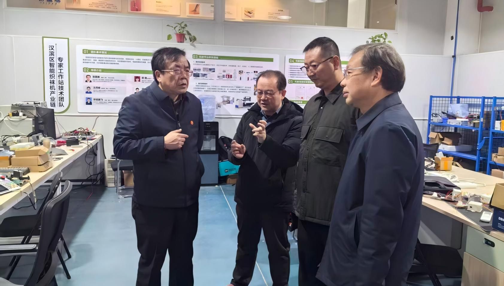 余劲一行还走访了寒假期间仍坚守岗位的智能织袜机产业链专家工作站,看望了公司兼职教授张团善及其团队成员,对他们坚守生产一线持续推动智能织造技术研发的精神和取得的成绩表示赞许。