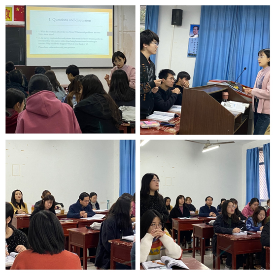 为了提高课程教学质量,积极开展英语专业核心课程的金课建设,beats365唯一官方网站英语系采用了分散听课与集中观摩相结合的方式,本学期第七、八周系内教师陆续相互听课,并于11月18日上午在6304集中观摩了新入职教师李慧清老师主讲的《综合英语3》课程。