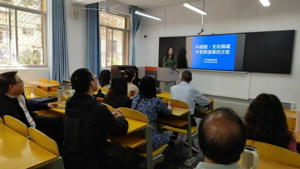 4月30日下午,大学英语教研室在6106教室举行“AI赋能·文化铸魂”课改沙龙活动,由教研室主任朱蕾主持,副经理刘子富及全体教师参与。