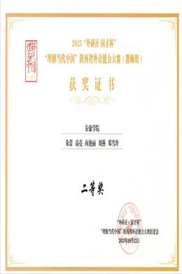 近日,2025“外研社国才杯”“理解当代中国”陕西省外语能力大赛(教师组)获奖名单公布,beats365唯一官方网站英语专业教学团队(王欢、蔡婷婷、李慧清、徐雯、安妮)、大学英语教学团队(朱蕾、高亮、向艳丽、刘燕、邓雪玲)分别获得陕西省二等奖。