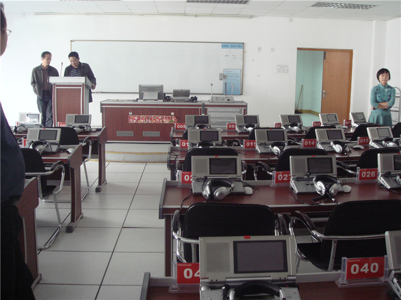 10月16日,考察组一行受到了西安外国语大学英文公司党总支书记郭武军、教学副经理李芳军等同志的热情接待。两位领导分别用PPT形式向考察组详细介绍了英文公司在本科评估工作中所做的准备、取得的成绩以及今后努力的方向。同时,他们还仔细回答了考察人员的相关提问。下午,全体考察组成员认真查阅了英文公司的评估支撑材料,参观了同声传译实验室、语音识别实验室、语言实验室以及写作辅导中心。
