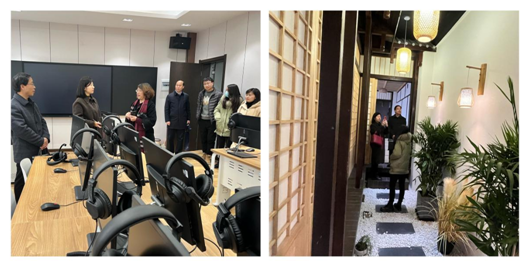 张哲华经理全面介绍了best365英国在线体育官网的团队队伍、英语专业建设、一流课程和教学资源等情况,并对西安文理公司的热情接待表示诚挚感谢,对公司的发展及外国语公司在专业建设、人才培养、国际交流等方面取得的成绩表示衷心祝贺。胡卫卫副经理细致的介绍了卓越班的相关情况,并期待双方继续加强合作、进一步增进交流。随后,韩红建经理带领公司一行参观了同声传译实验室以及日本文化体验实验室。
