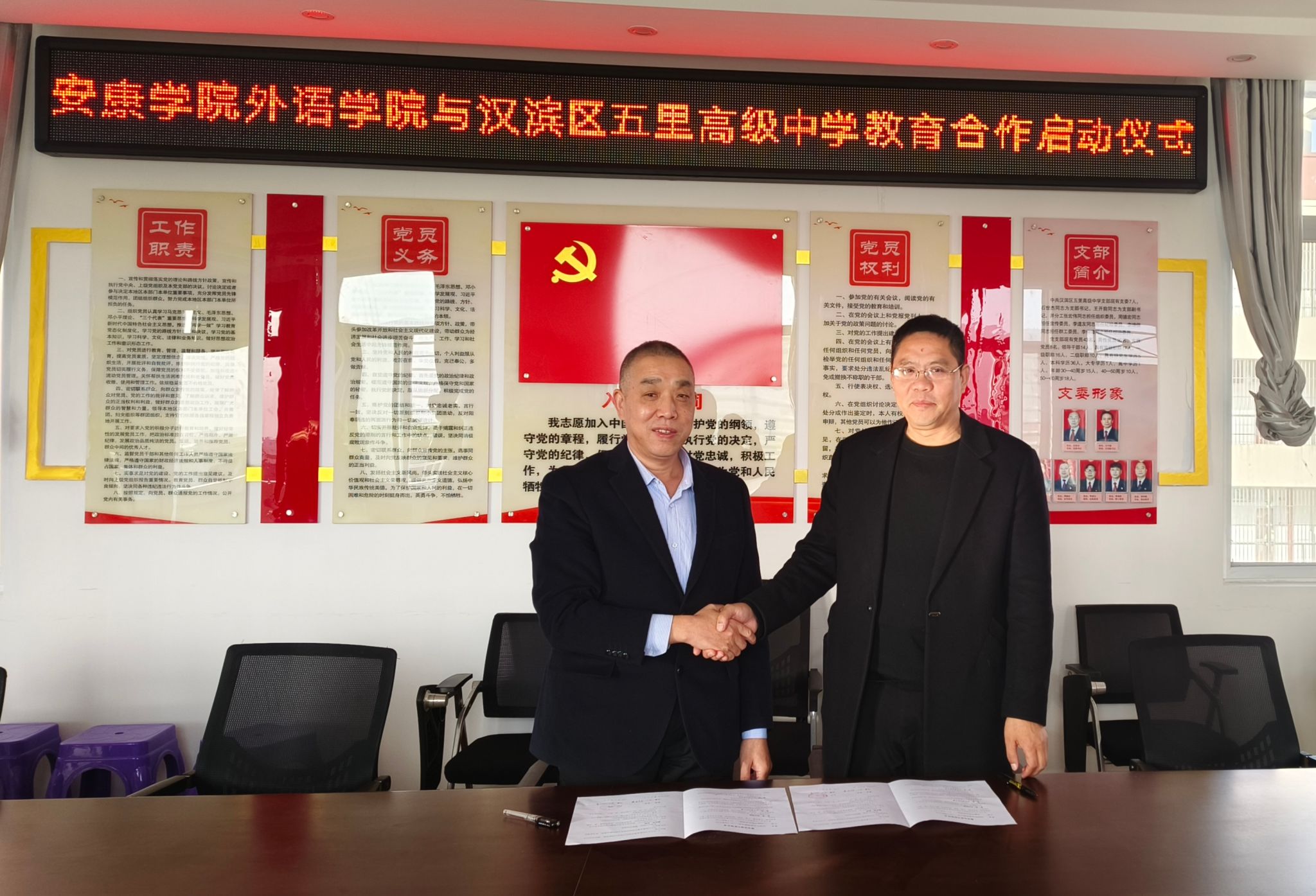 为贯彻落实党的二十大报告中“加快建设高质量教育体系”的有关要求和BEAT365英国官网网站2023年度科研工作推进会的相关精神,充分发挥beats365唯一官方网站服务地方基础教育和经济社会发展方面的学科专业优势,beats365唯一官方网站刘子富、钱莉、向艳丽等一行于2023年11月16日前往汉滨区五里高级中学,出席了合作协议签订仪式。