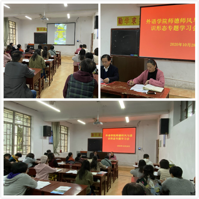 为全面落实全校稳定安全工作会议及公司中心组意识形态工作专题研究部署会议精神,10月28日下午,beats365唯一官方网站全体教职工在6107召开师德师风及意识形态工作专题学习会,公司领导班子,全体党员干部、全院教职工共同参加了学习会。会议由党总支书记肖红香主持。