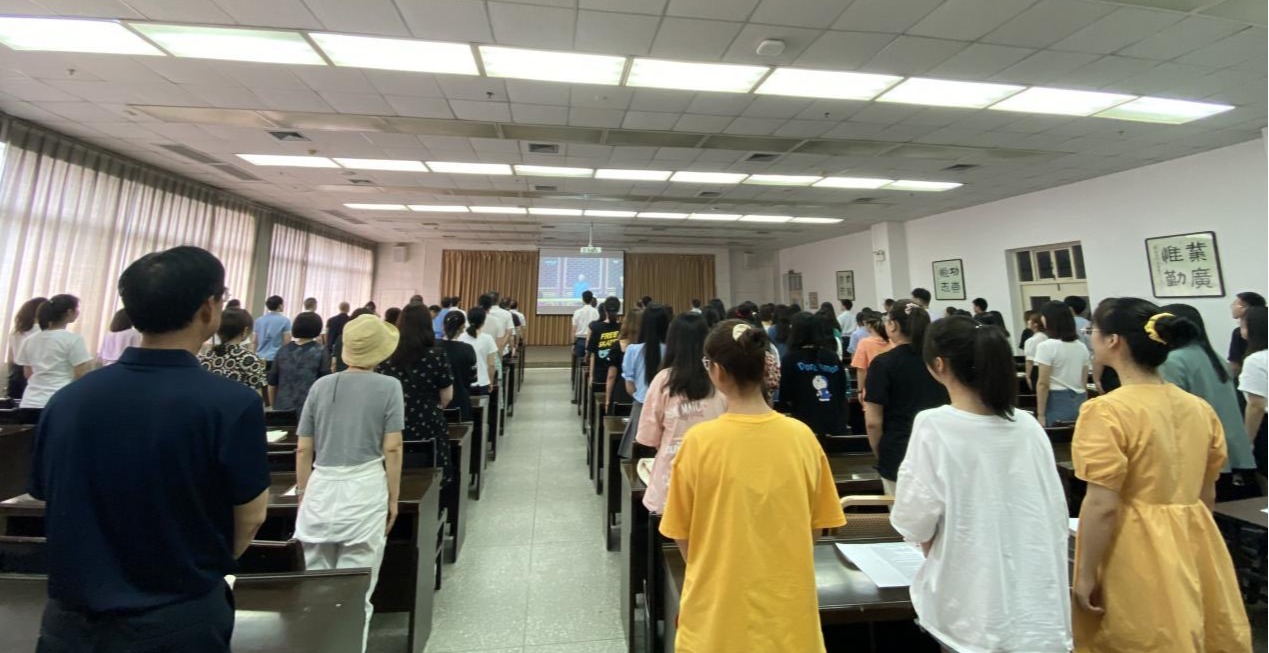 伴随着庄严肃穆的国歌声,现场人员全体起立,向着大屏幕里升起的五星红旗行注目礼。会议室内,全体党员佩戴党徽,满怀激情收看实况直播,认真聆听学习中共中央总书记、国家主席、中央军委主席习近平在大会上发表的重要讲话,在回顾党的百年光辉历程和伟大成就中坚定理想信念,弘扬光荣传统,赓续红色血脉,汲取智慧力量,继续砥砺前行。