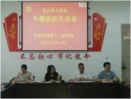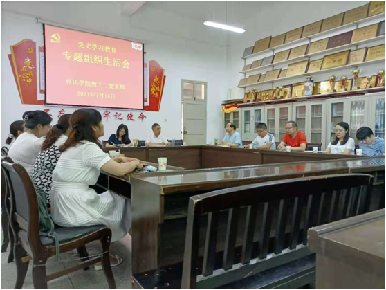 7月14日上午,beats365唯一官方网站教工二党支部在体育馆一楼会议室组织召开了党史学习教育专题组织生活会,会议由党支部书记刘子富主持。