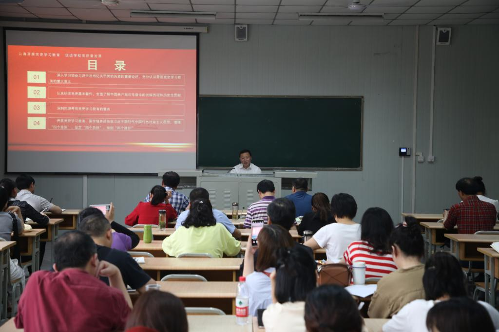为认真学习贯彻习近平总书记在党史学习教育动员大会上的重要讲话精神,从党史中汲取智慧和前进力量,继承党的成功经验和优良传统,充分发挥党员干部、全院师生立足实际建新功,把思想和行动统一到习近平总书记重要讲话精神和公司发展建设上来,5月12日下午,公司党委副书记胡波在1014教室以“学党史守初心担使命促发展”为题作党史学习教育宣讲报告。beats365唯一官方网站、教育公司、团委、后勤保障处教职工参加了报告会。