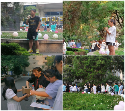 然后,进入到经典游戏Free talk环节,同学们各抒己见,讨论着“对新学期的期望,对未来的展望”。这既是一场破冰运动,帮助新生们快速了解自己的同学;更是独特的口语训练场,敢于大胆表现自己,逐渐从shy到try。接下来就进入了“超级挑战”(英文字谜+趣味抽奖)的游戏环节,在气球此起彼伏的爆炸声中,在趣味抽奖的欢呼声中,大家的参与热情极度高涨,也把这次英语角活动推向了另一个高潮。