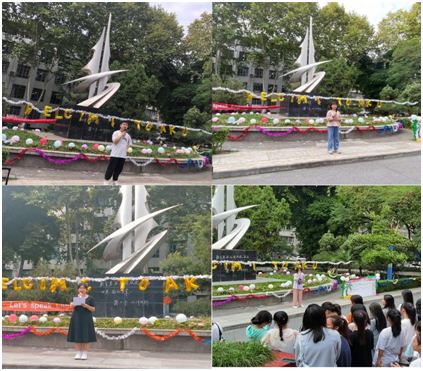 本次活动分为三个部分,首先由19级常乐、徐子恩以及20级的陈思三位进行了精彩发言,三位同学分别就如何提高英语口语、如何做好大学规划以及如何更好适应老员工活给出了自己的建议。21级新生任可心同学也对新学期的期望和对未来的规划,进行了简单的发言。
