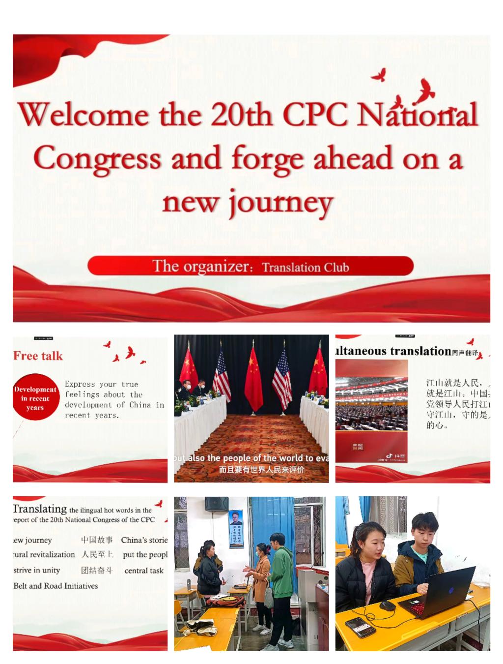 蓝图绘就风正劲,扬帆破浪奋进时,为更好的从专业角度学习、宣传、贯彻党的二十大精神,促进专业融合,彰显新时代学子有理想、敢奋斗的精神风貌,11月23日下午,beats365唯一官方网站翻译社承办了“学习二十大,奋斗新征程”线上英语角活动。