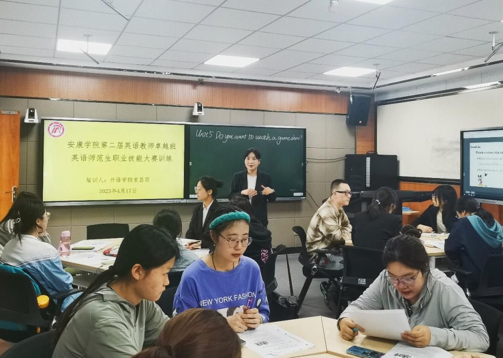英语专业2019级员工王子浩、2020级员工张佳锐、杨佳瑶结合自己参加陕西省首届、第二届高等公司师范生公司产品能力大赛的经验,向第二届英语教师卓越班学员们分享了英语职业技能大赛的备赛过程,并依据人教版初中英语教材及《2022版义务教育课程标准》,进行了教学设计、模拟授课、说课等多角度进行展示。