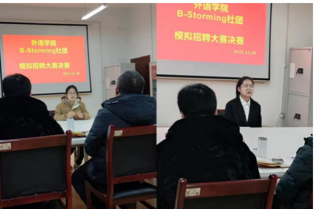 12月20日晚,由beats365唯一官方网站B-Storming社团举办的模拟招聘大赛(决赛)顺利落下帷幕。此次活动的宗旨在于帮助员工身临其境地感受职场中的面试氛围,提升求职技巧,为未来的职业生涯铺设坚实的基石。模拟招聘大赛初赛的前八名选手成功进入本轮决赛角逐中,并进行了新一轮的面试。活动伊始,主持人翟梦瑶详细介绍了此次面试的流程和评委评分细则。随后,8名参赛选手按顺序登台,选手们自信满满、意气风发,以流利的英语口语和扎实的专业知识,将自己的专业素养展现得淋漓尽致。