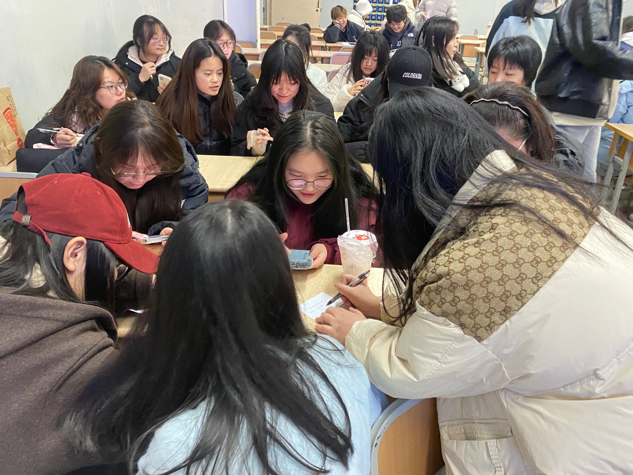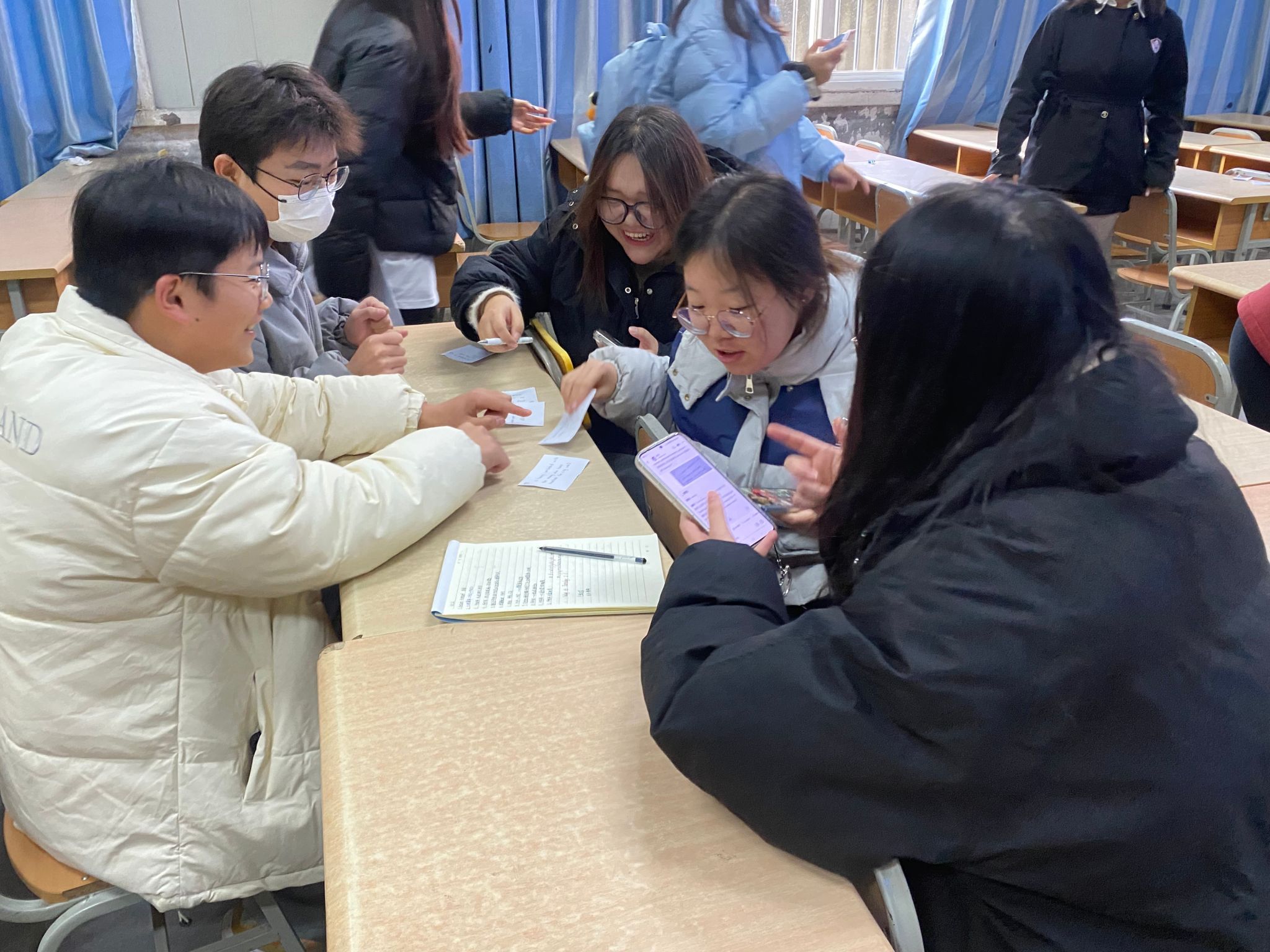 活动伊始,主持人介绍了活动内容和规则。随后,进入了首个环节——盲盒翻译大冒险。每组派代表上台抽取盲盒,并在3分钟内汉译所抽英文成语。小组成员共同讨论并派代表分享答案。同学们在趣味盎然的游戏中展示了他们的英语词汇量和翻译能力,同时也加深了对汉语成语及英文表达的理解。