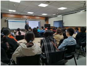 职业技能训练中心陈波超系统地介绍了相关设备的使用方法。从职业技能测试系统的使用方法到课程录制,利用ppt实机演示的方式直观地对于测评的细节和教案设计、课件、微格视频、教学反思等作业上传的基本流程进行了系统讲述。