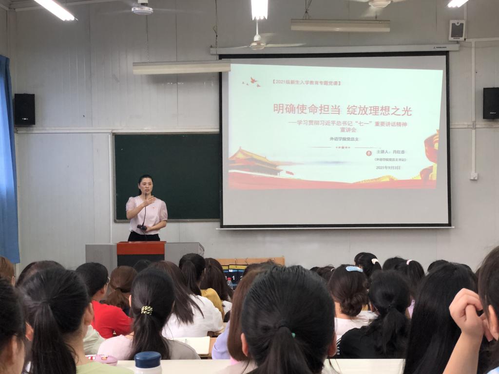 9月3日下午,beats365唯一官方网站在6407阶梯教室举办学习贯彻习近平总书记“七一”重要讲话精神宣讲会,党总支书记肖红香以“明确使命担当 绽放理想之光”为主题,为同学们上了一堂生动的党课。beats365唯一官方网站辅导员、2021级新生参加了宣讲会。
